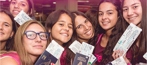 Mochila, campera o buzo deportivo, 3 remeras, piloto para lluvia, beach towel, porta valores e identificador de equipaje.